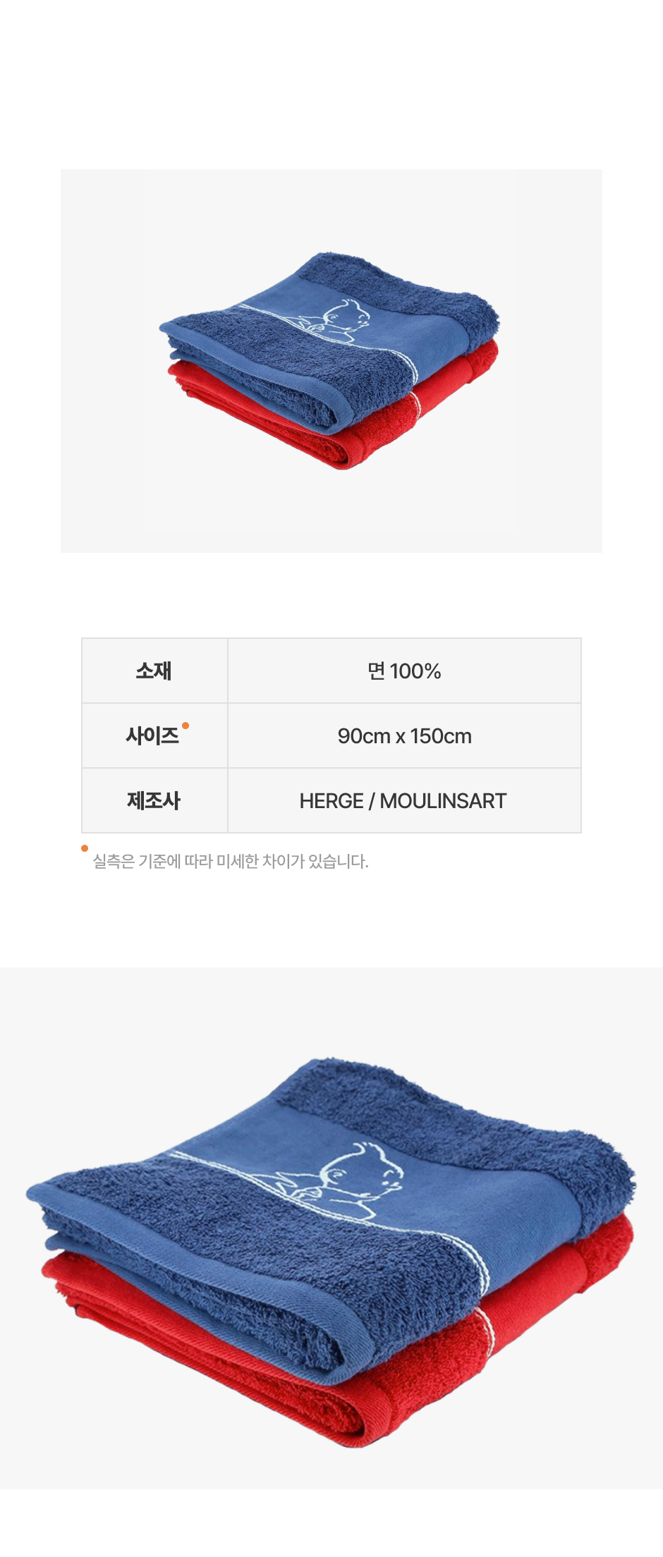 MAX BATH TOWEL RED 땡땡&밀루 수건 90x150