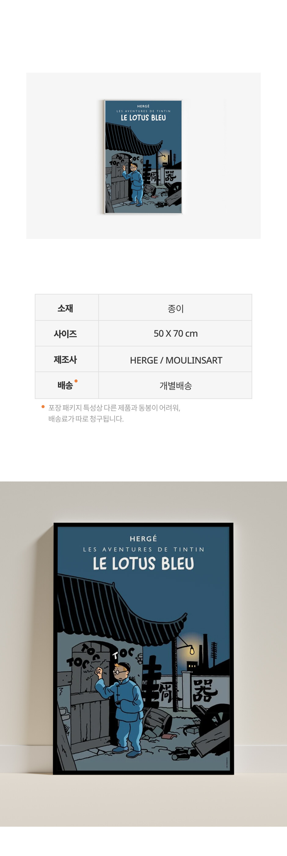배송 비용 ㅣ 3,000원 / 50,000원 이상 구매 시 무료배송 / 포스터는 지관통 포장 발송이기 때문에 타 카테고리 상품과 합포장이 불가합니다