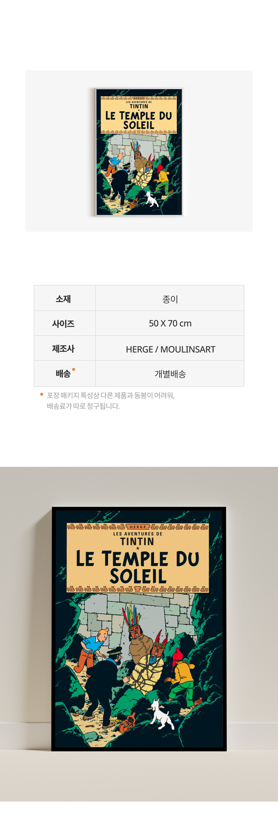 배송 비용 ㅣ 3,000원 / 50,000원 이상 구매 시 무료배송 / 포스터는 지관통 포장 발송이기 때문에 타 카테고리 상품과 합포장이 불가합니다