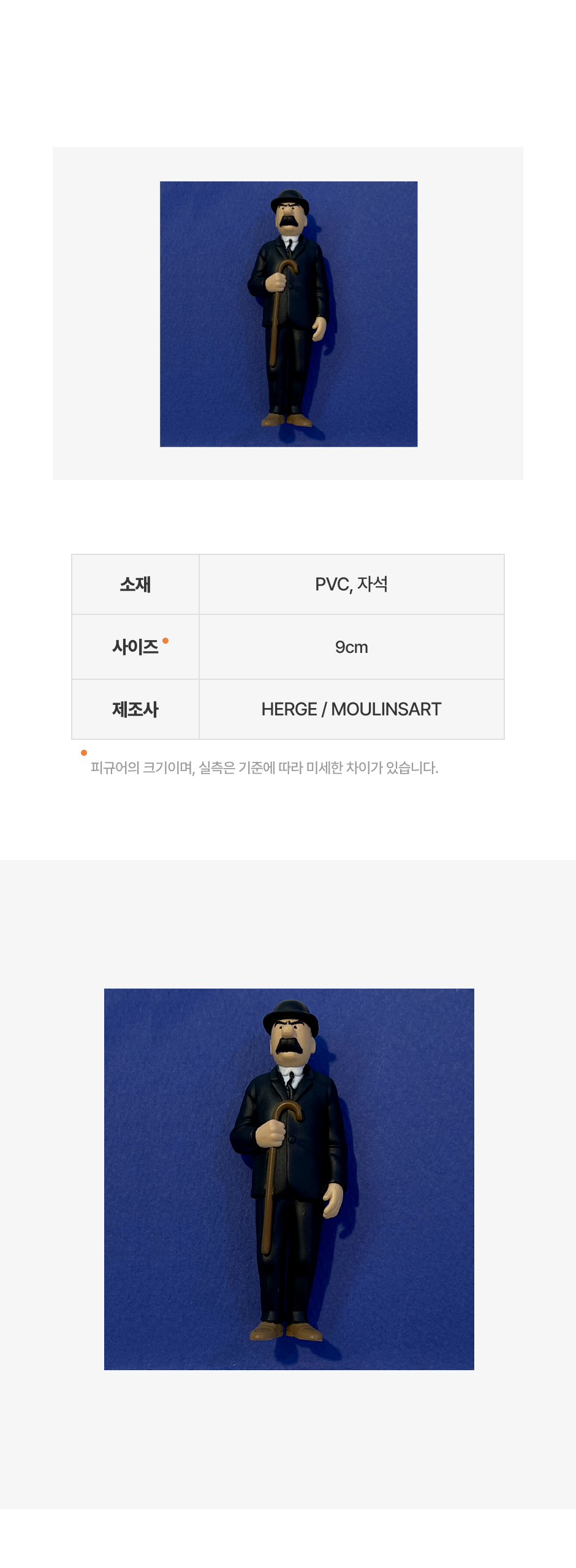 - 제작 과정에서 피규어의 자세와 발 모양에 약간씩의 차이가 발생합니다. 또한, PVC 상품은 재질 및 제작 과정 특성상 100% 완벽하게 도색되어 있는 제품이 거의 없습니다.소량의 잉크가 번지거나 얼룩이 묻어있는 경우 등이 있으므로 정도가 심하지 않은 경우엔 교환 / 반품이 불가합니다.
