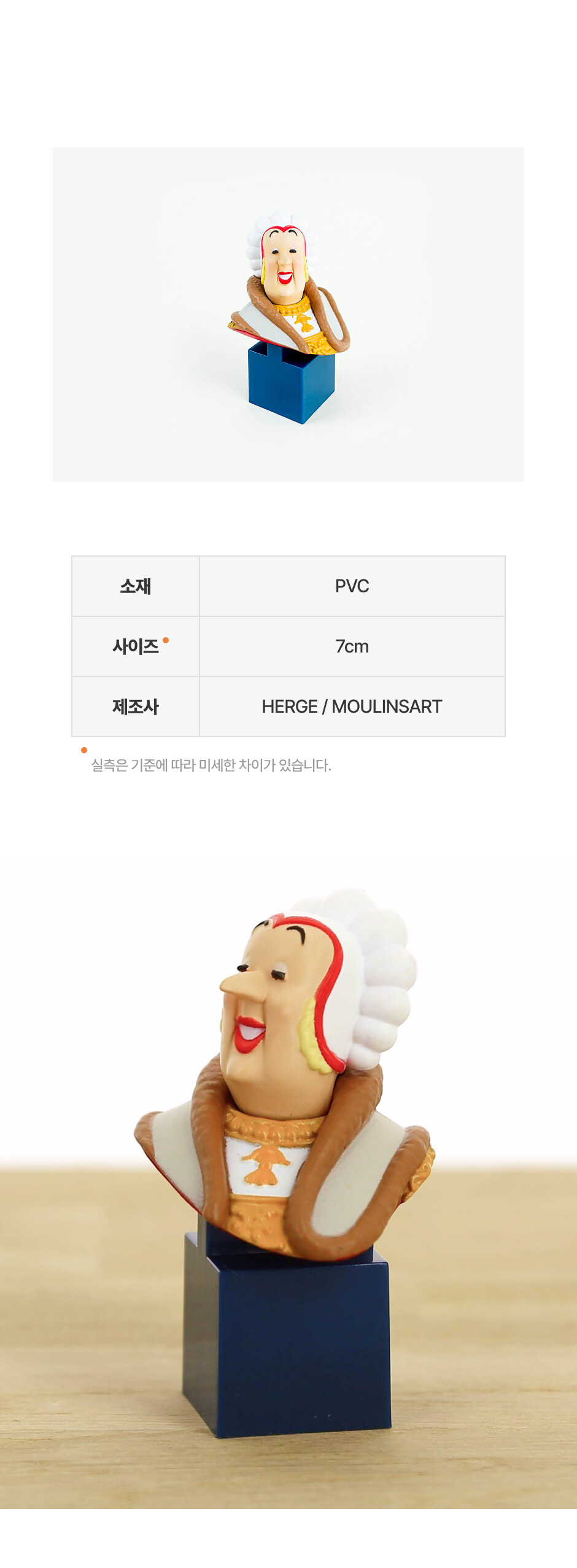 - 제작 과정에서 피규어의 자세와 발 모양에 약간씩의 차이가 발생합니다. 제품을 단독으로 세우기 어려운 경우가 있으니 구매 시 참고해 주세요.